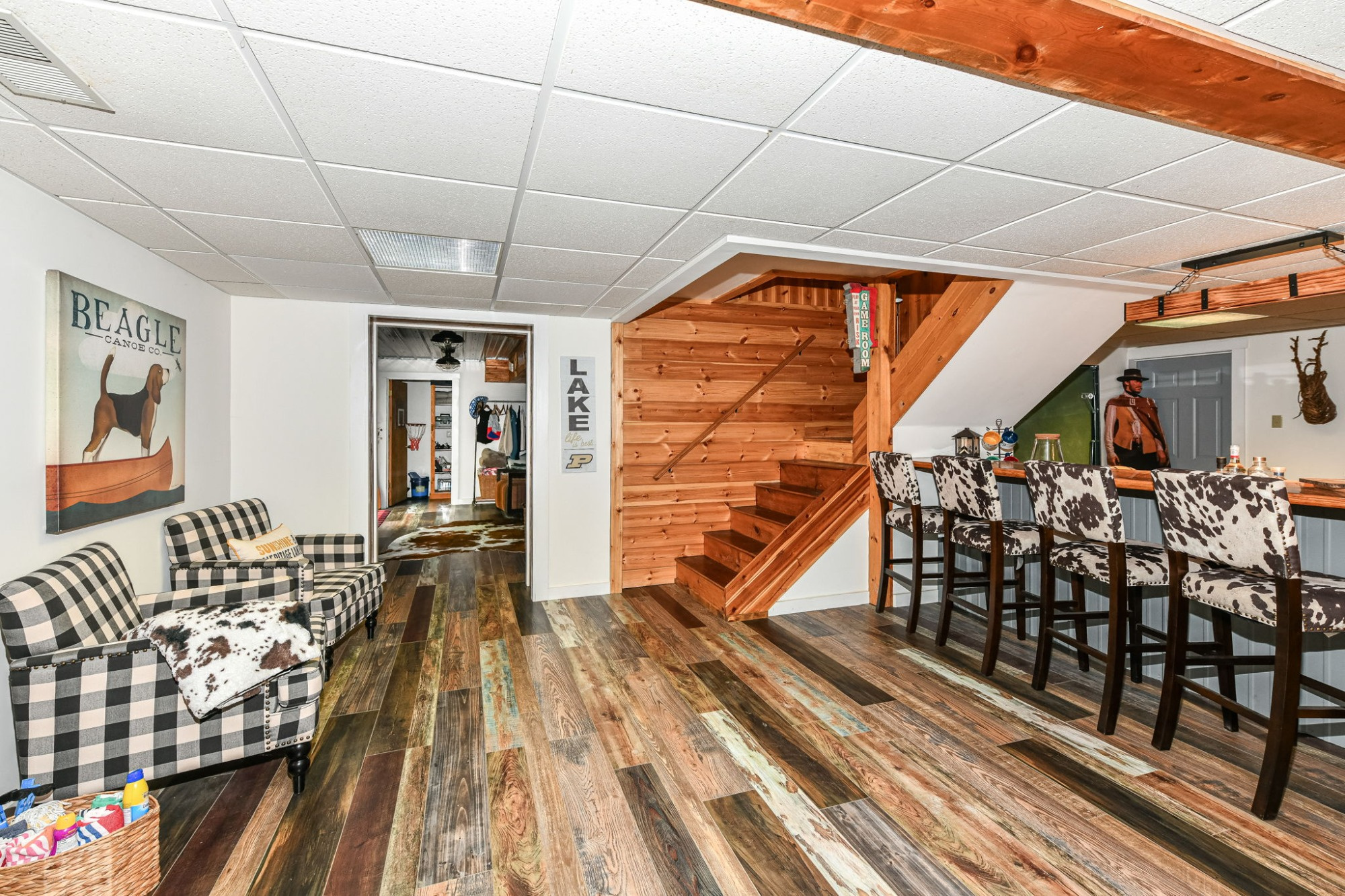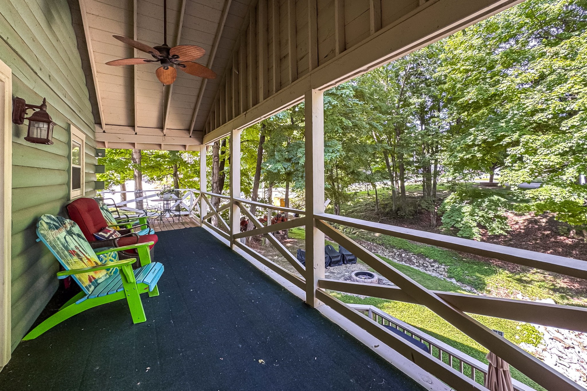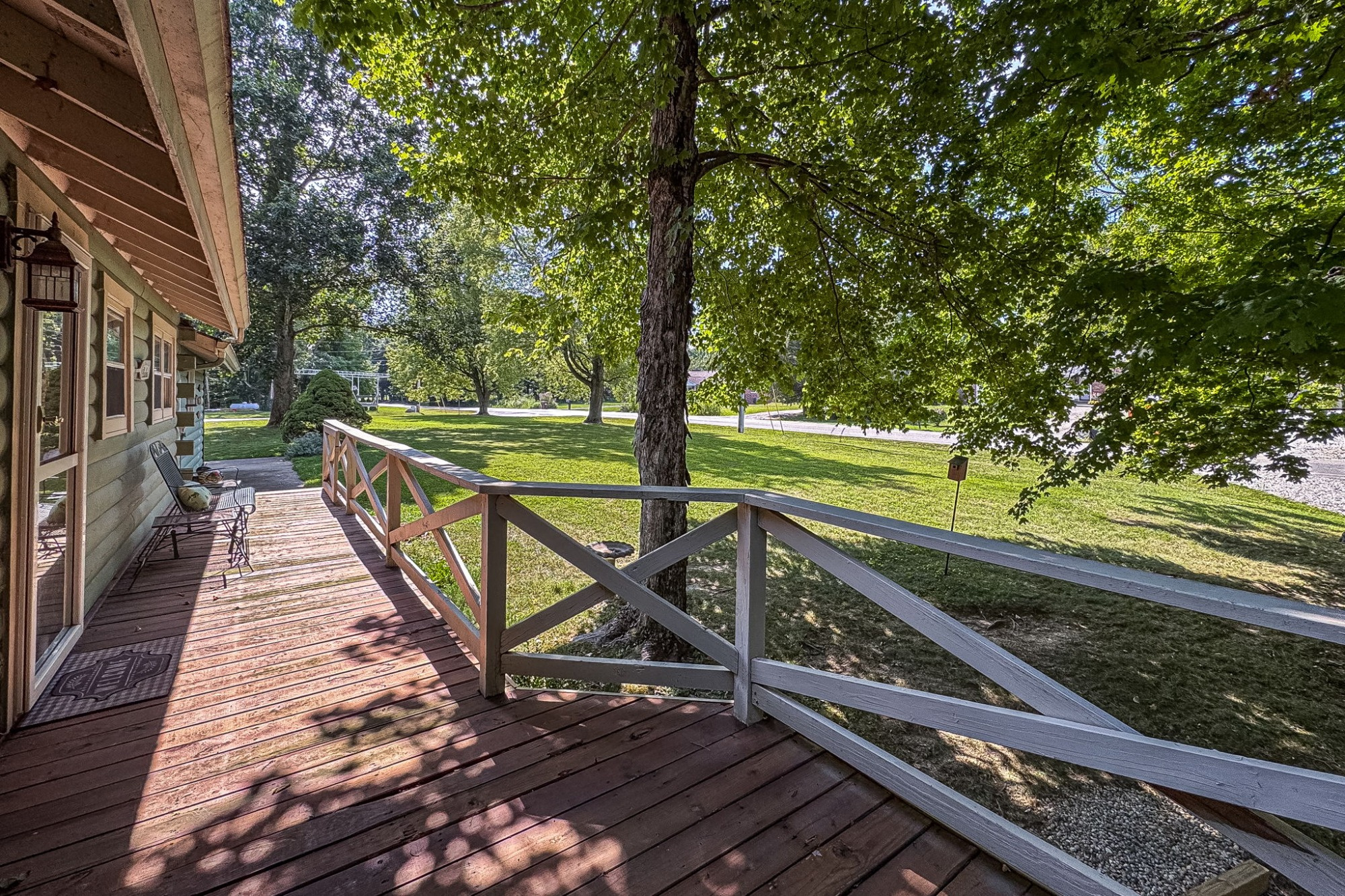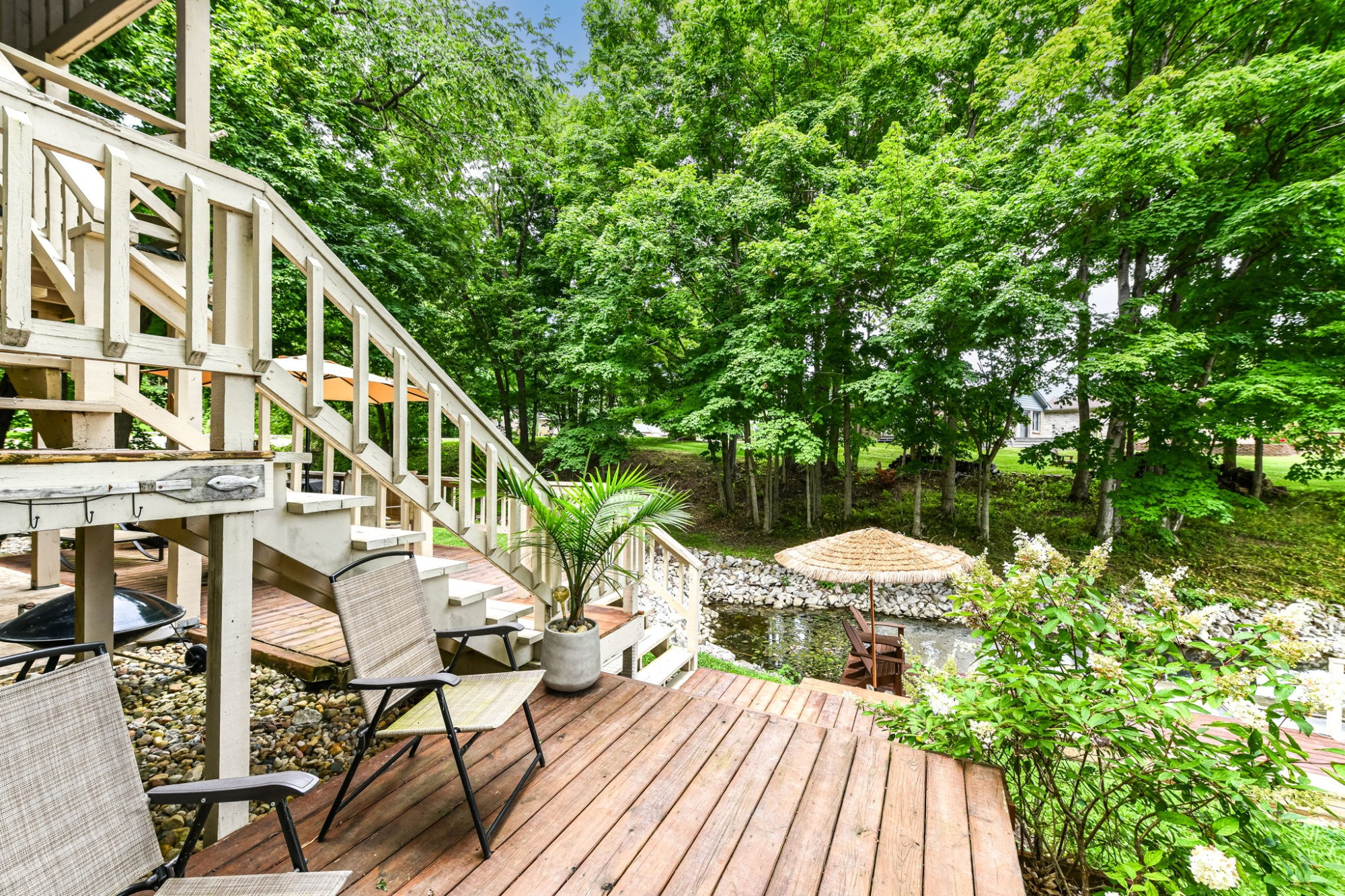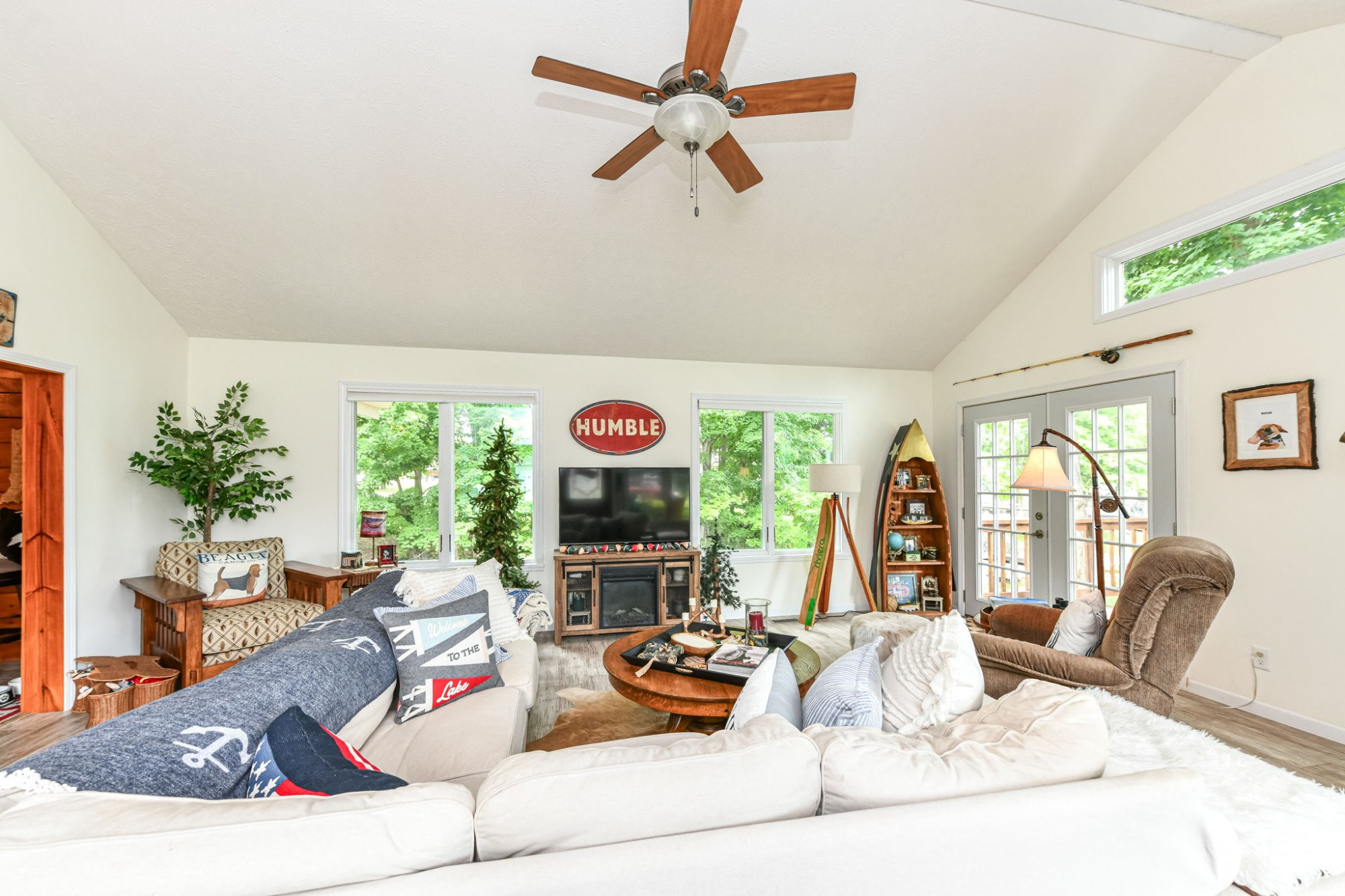 Perfectly nestled in a peaceful cove while still offering picturesque views of the main body of the lake. Sitting on a double lot, this property provides endless opportunities-expand the home, build a garage, or simply enjoy the extra space. This home is made for outdoor living, with multiple entertaining areas ideal for summer cookouts, lazy afternoons in the sun, or swimming and fishing right from your own dock. Inside, the spacious kitchen is a blank canvas-ready for you to design the culinary space of your dreams. There's plenty of room to add a large island with seating for 8 or more, making it the perfect gathering spot. The great room offers sweeping water views through large windows and direct access to one of the upper decks. Downstairs, the walkout basement features a roomy bunk area for guests, a wet bar, and even more space for entertaining-perfect for game nights or relaxing after a day on the lake. Your lake getaway awaits-bring your vision and make it your own!