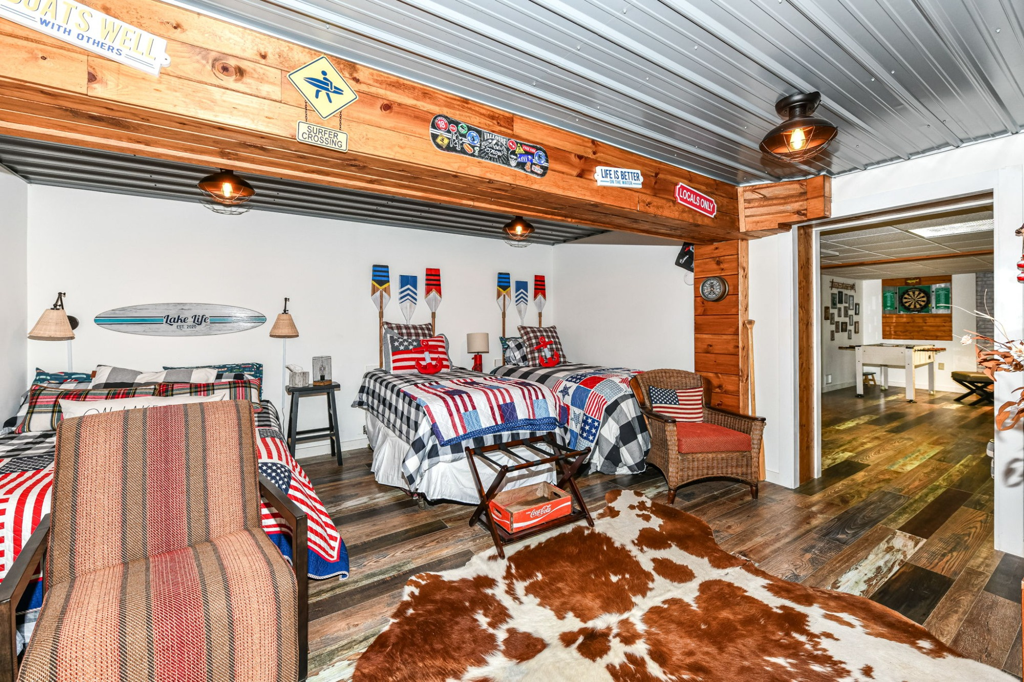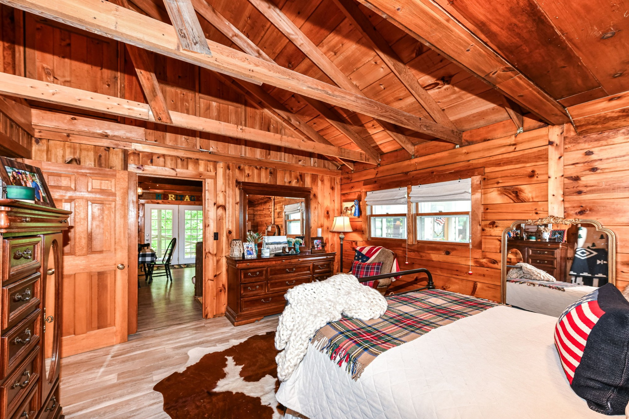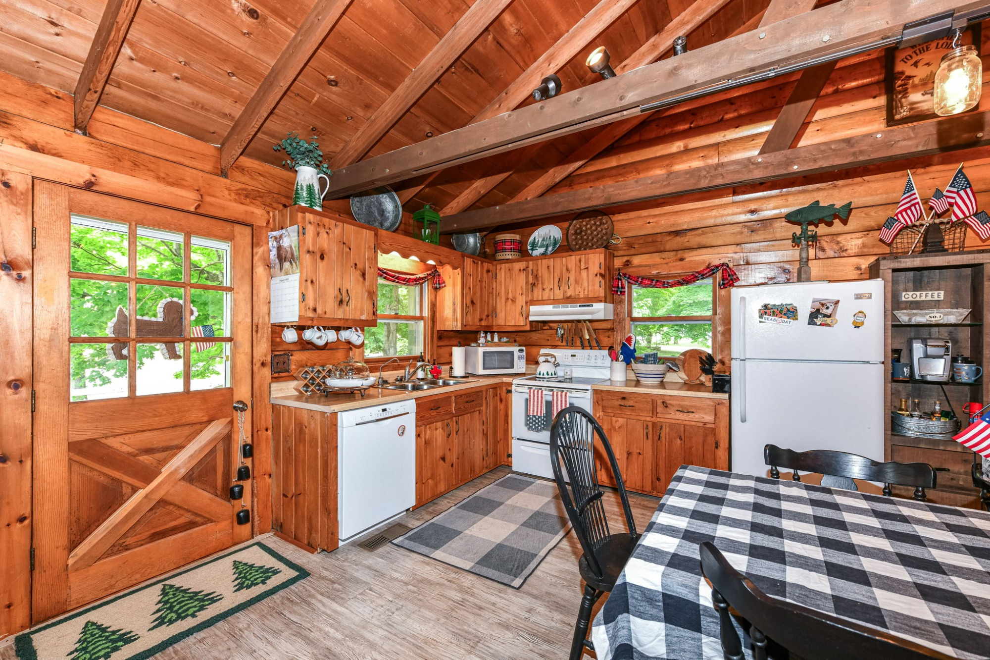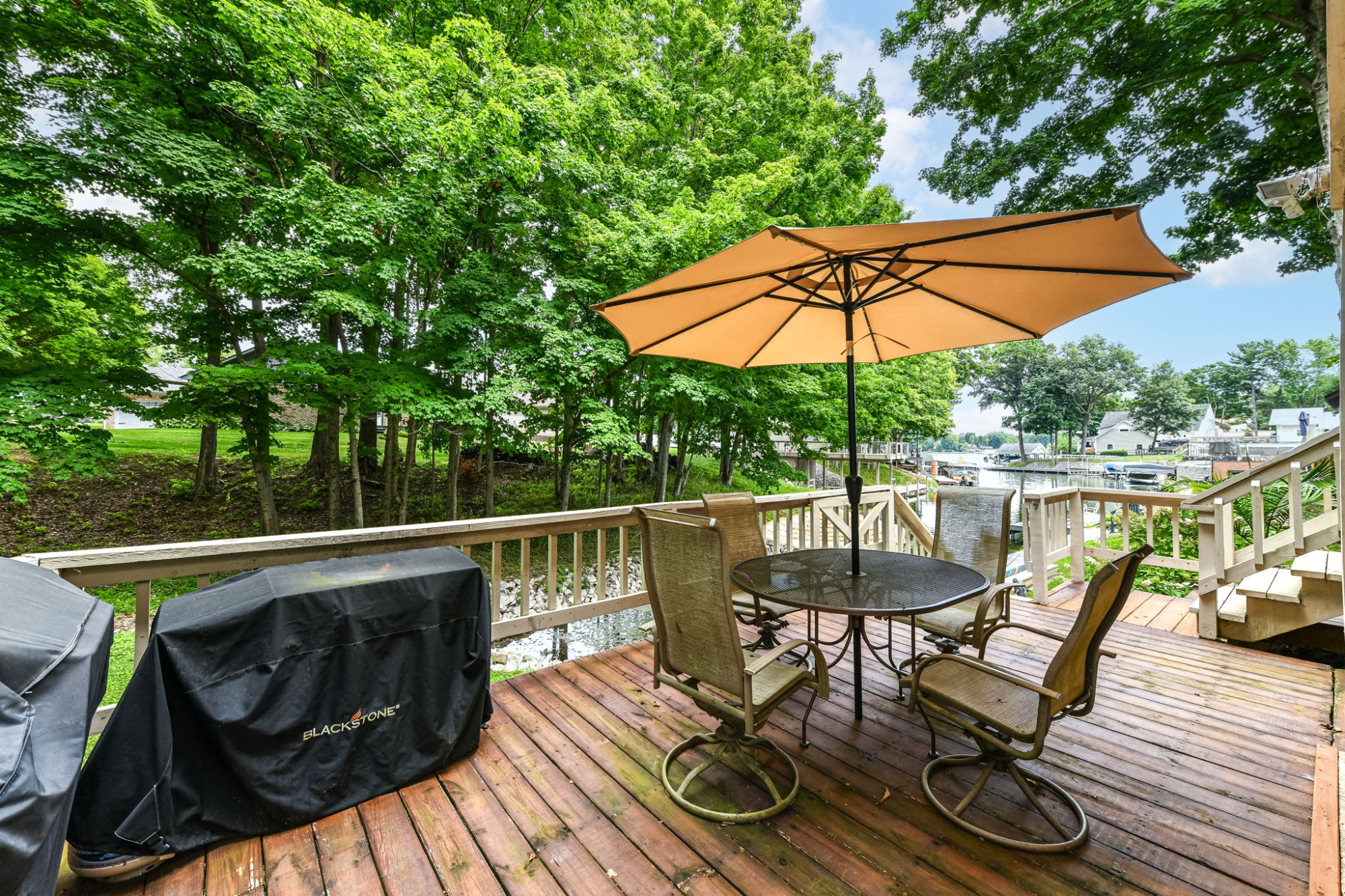 Perfectly nestled in a peaceful cove while still offering picturesque views of the main body of the lake. Sitting on a double lot, this property provides endless opportunities-expand the home, build a garage, or simply enjoy the extra space. This home is made for outdoor living, with multiple entertaining areas ideal for summer cookouts, lazy afternoons in the sun, or swimming and fishing right from your own dock. Inside, the spacious kitchen is a blank canvas-ready for you to design the culinary space of your dreams. There's plenty of room to add a large island with seating for 8 or more, making it the perfect gathering spot. The great room offers sweeping water views through large windows and direct access to one of the upper decks. Downstairs, the walkout basement features a roomy bunk area for guests, a wet bar, and even more space for entertaining-perfect for game nights or relaxing after a day on the lake. Your lake getaway awaits-bring your vision and make it your own!