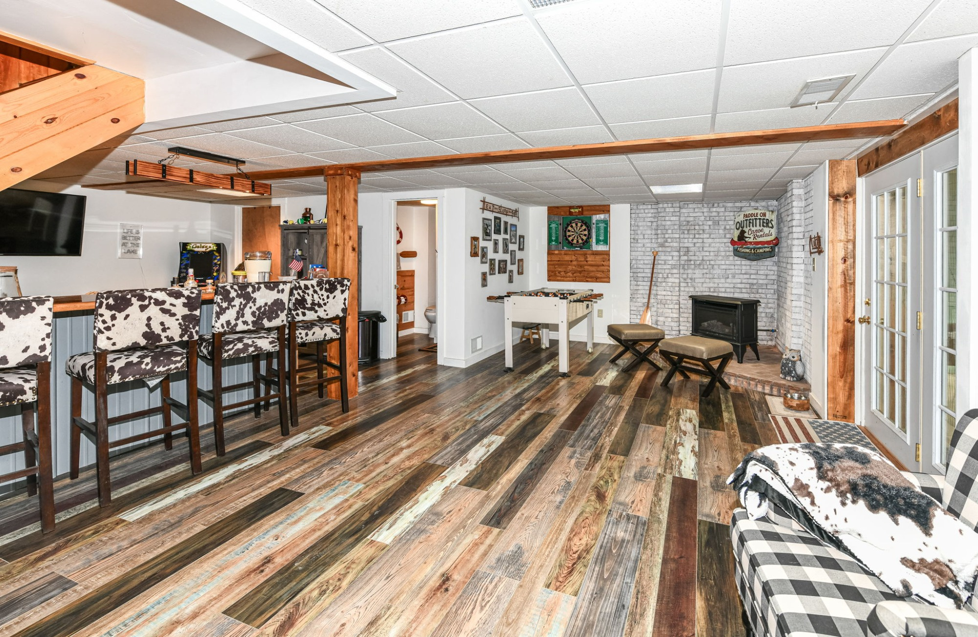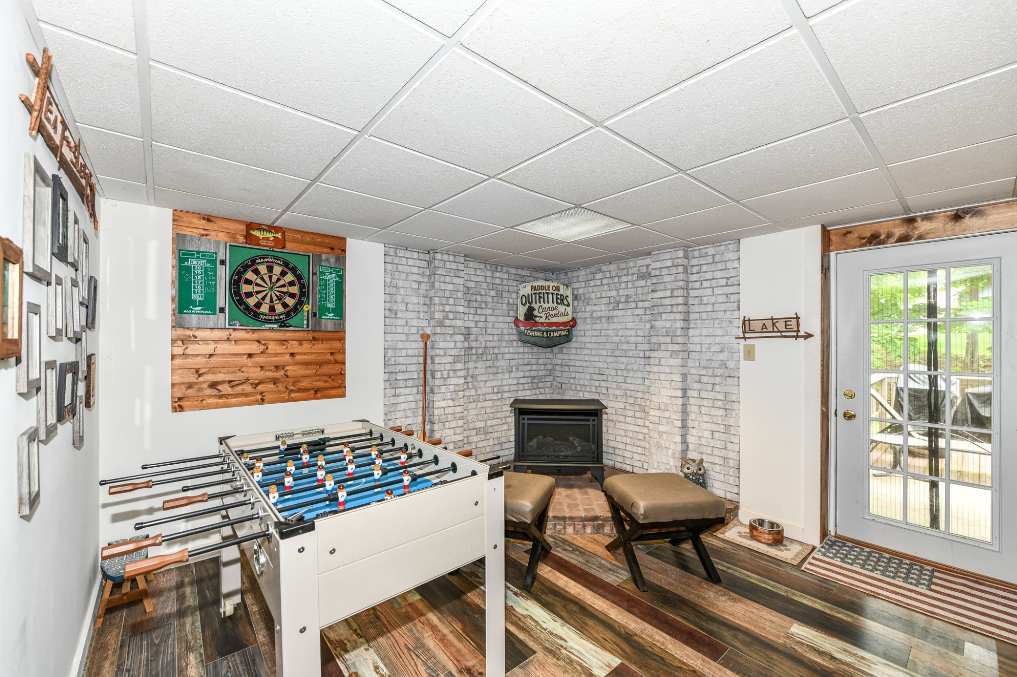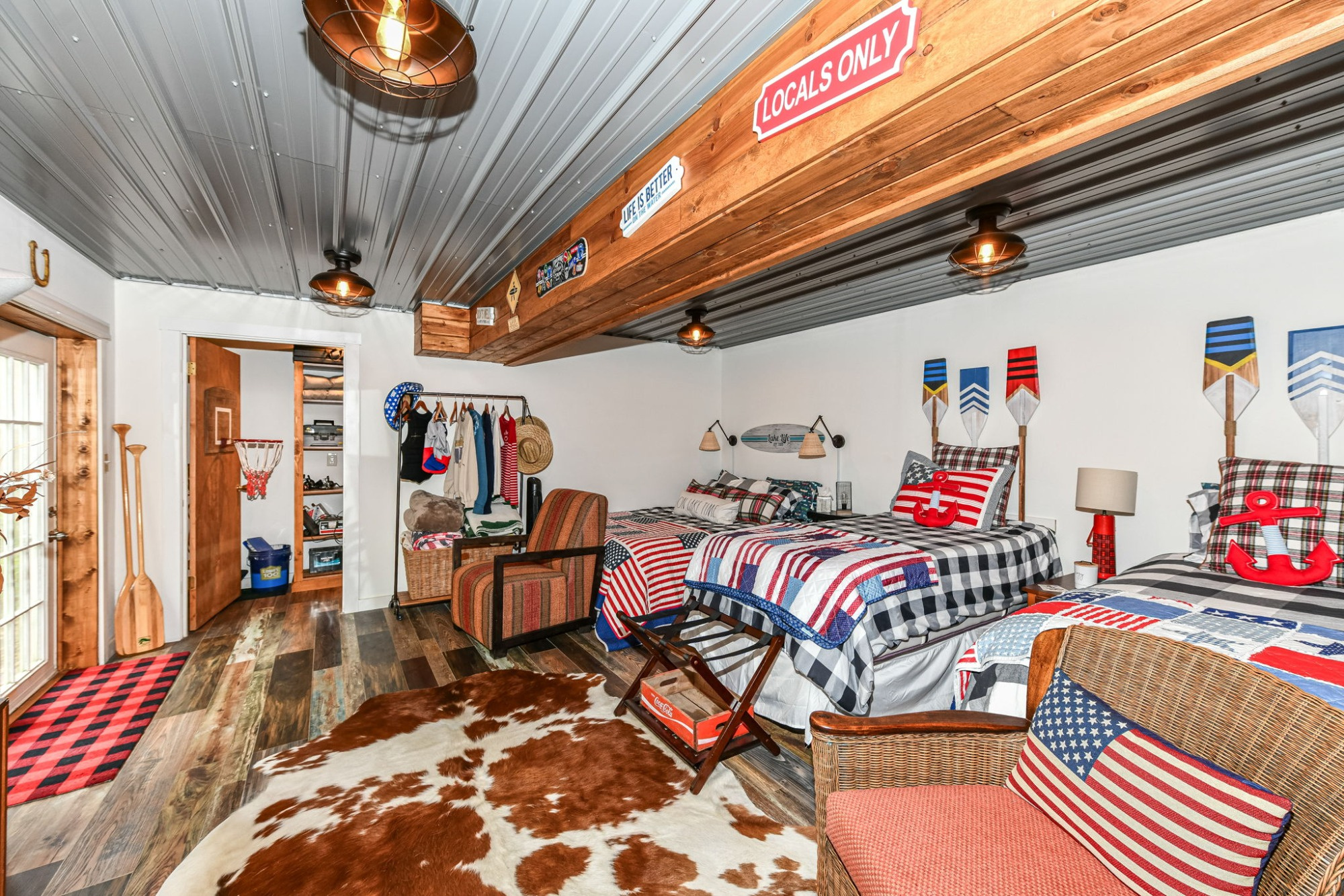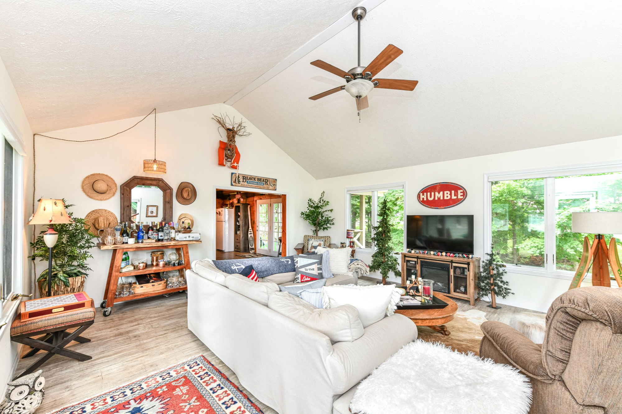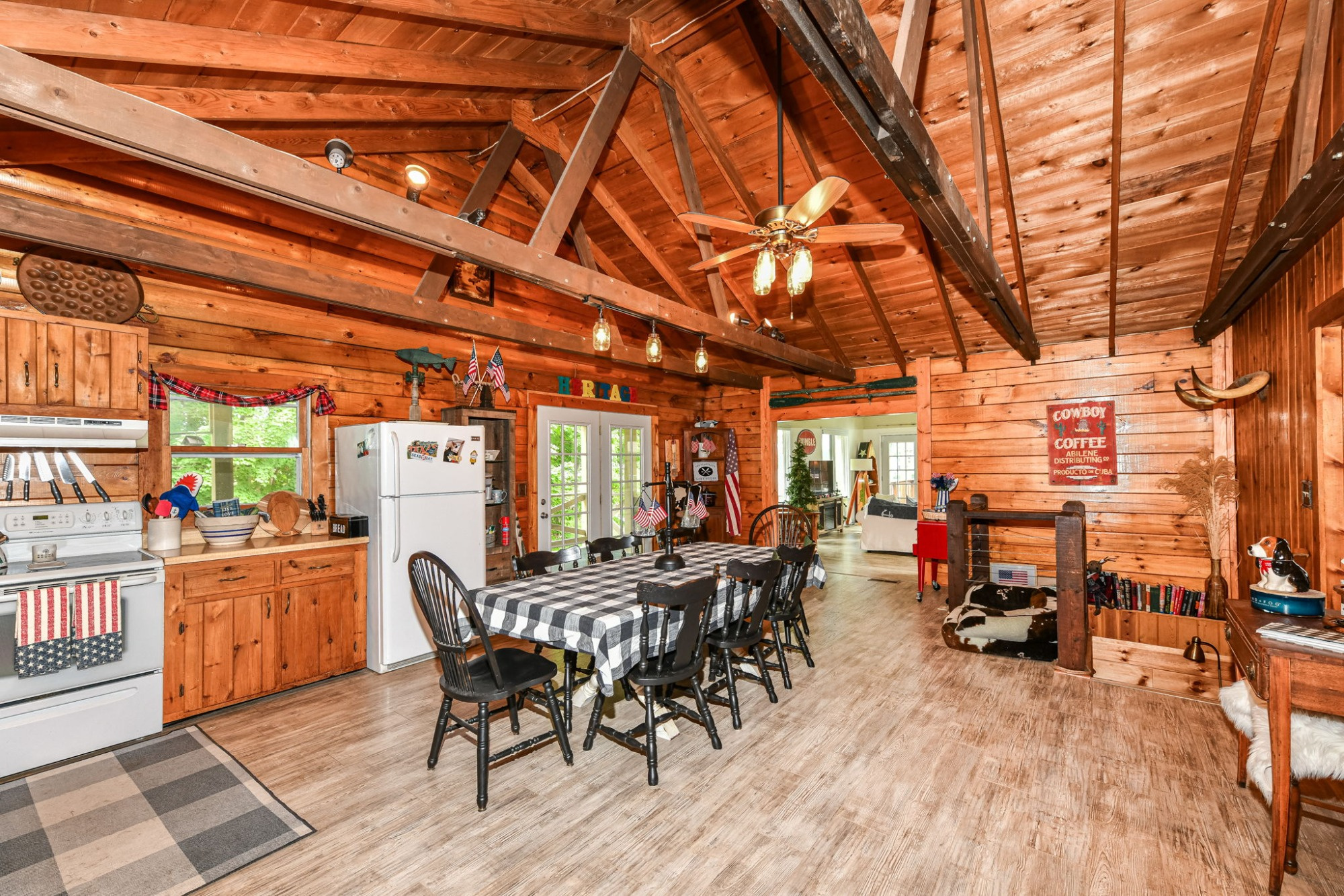 Perfectly nestled in a peaceful cove while still offering picturesque views of the main body of the lake. Sitting on a double lot, this property provides endless opportunities-expand the home, build a garage, or simply enjoy the extra space. This home is made for outdoor living, with multiple entertaining areas ideal for summer cookouts, lazy afternoons in the sun, or swimming and fishing right from your own dock. Inside, the spacious kitchen is a blank canvas-ready for you to design the culinary space of your dreams. There's plenty of room to add a large island with seating for 8 or more, making it the perfect gathering spot. The great room offers sweeping water views through large windows and direct access to one of the upper decks. Downstairs, the walkout basement features a roomy bunk area for guests, a wet bar, and even more space for entertaining-perfect for game nights or relaxing after a day on the lake. Your lake getaway awaits-bring your vision and make it your own!