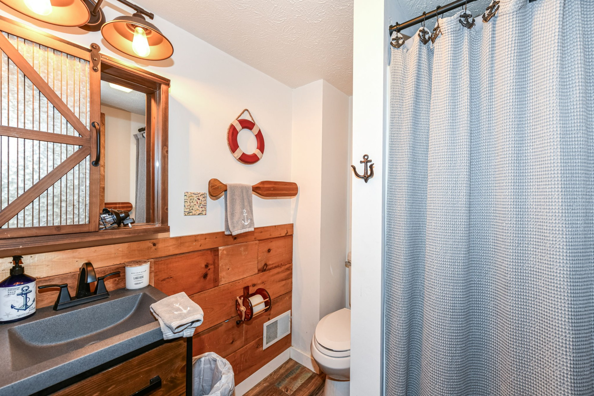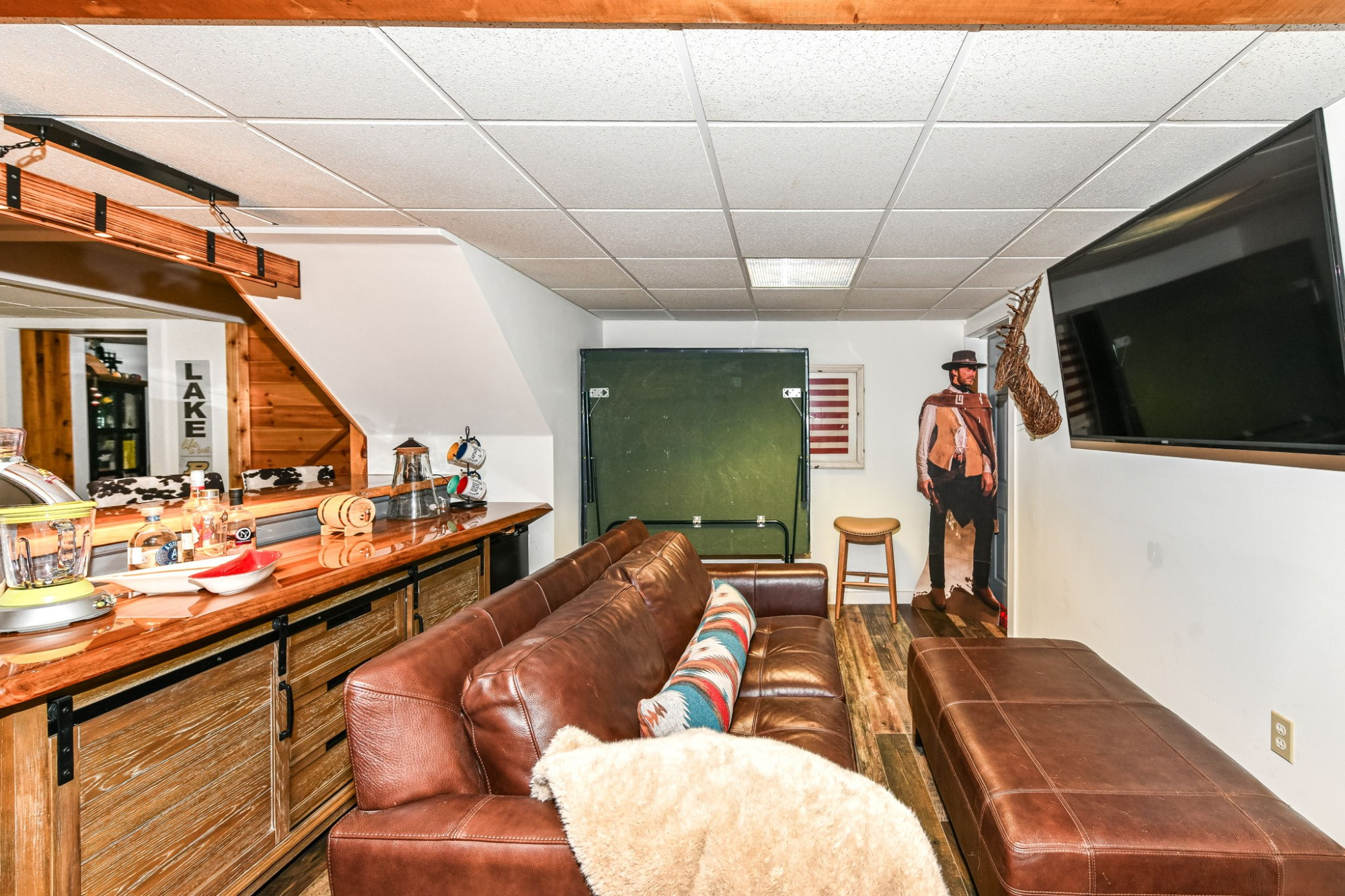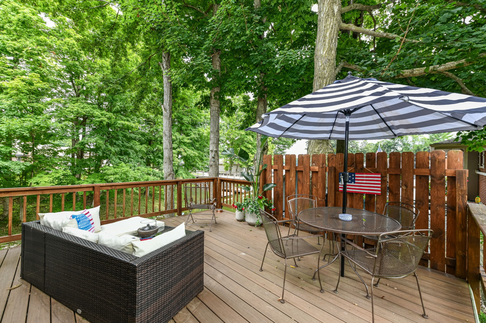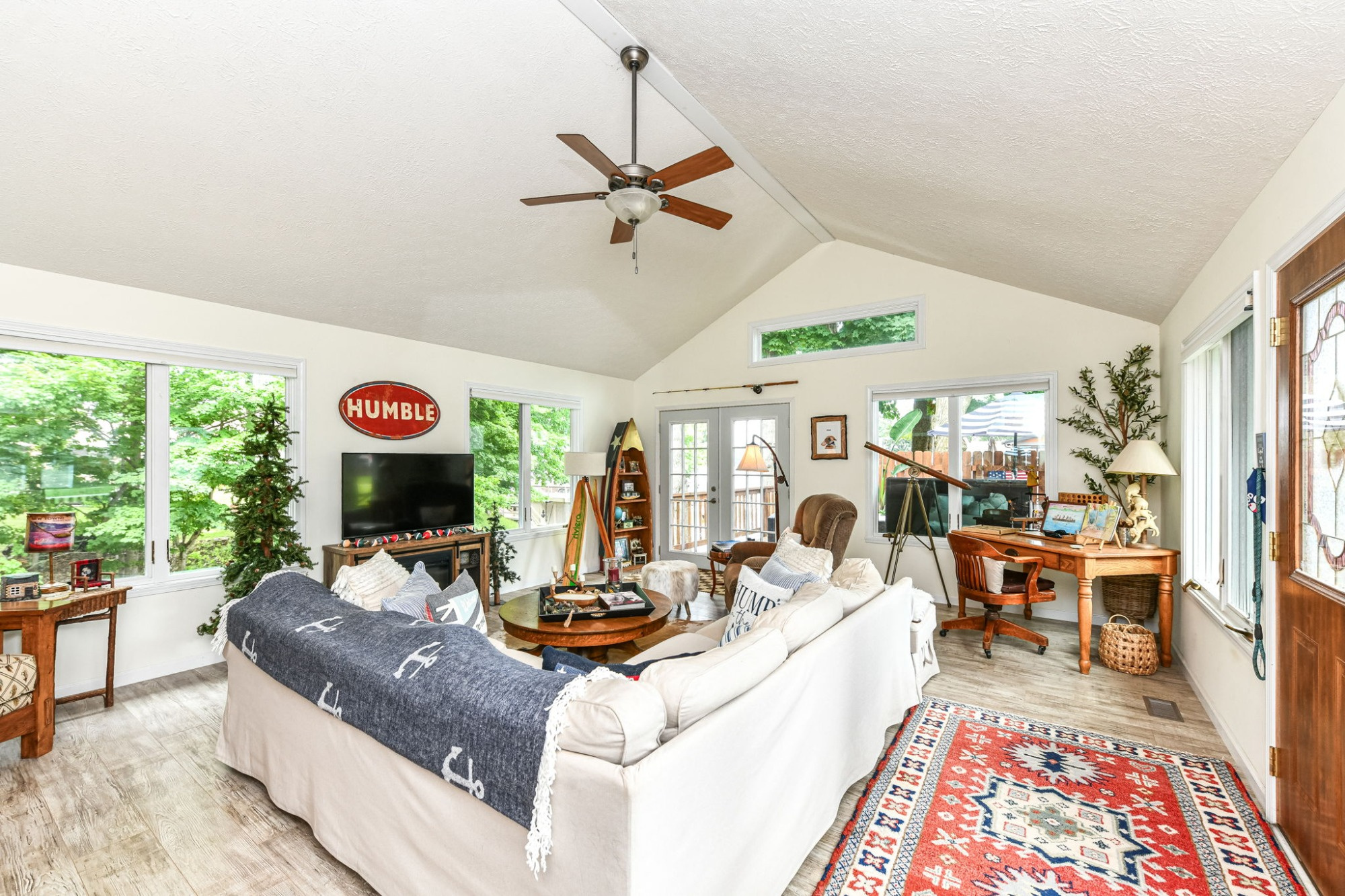Perfectly nestled in a peaceful cove while still offering picturesque views of the main body of the lake. Sitting on a double lot, this property provides endless opportunities-expand the home, build a garage, or simply enjoy the extra space. This home is made for outdoor living, with multiple entertaining areas ideal for summer cookouts, lazy afternoons in the sun, or swimming and fishing right from your own dock. Inside, the spacious kitchen is a blank canvas-ready for you to design the culinary space of your dreams. There's plenty of room to add a large island with seating for 8 or more, making it the perfect gathering spot. The great room offers sweeping water views through large windows and direct access to one of the upper decks. Downstairs, the walkout basement features a roomy bunk area for guests, a wet bar, and even more space for entertaining-perfect for game nights or relaxing after a day on the lake. Your lake getaway awaits-bring your vision and make it your own!