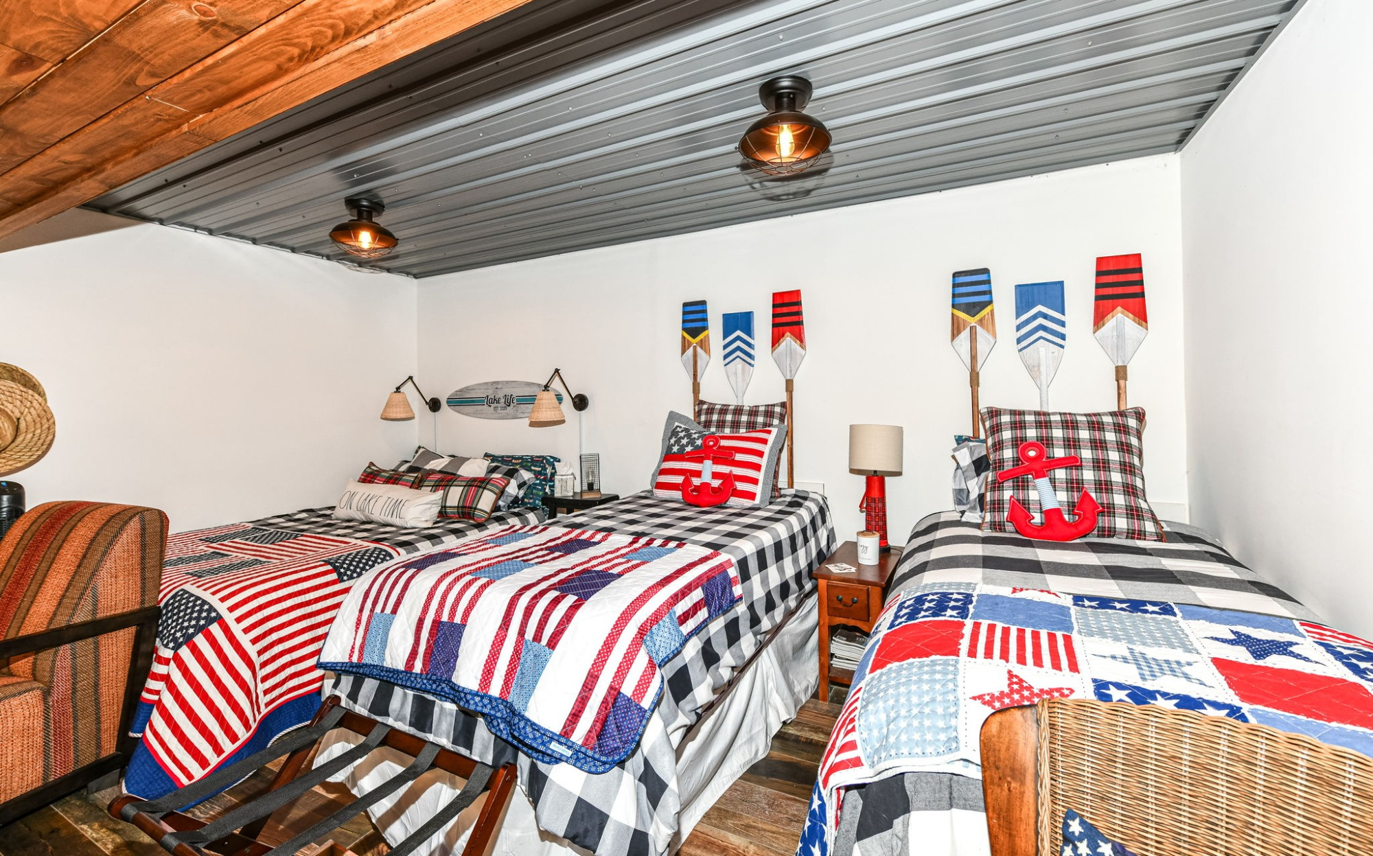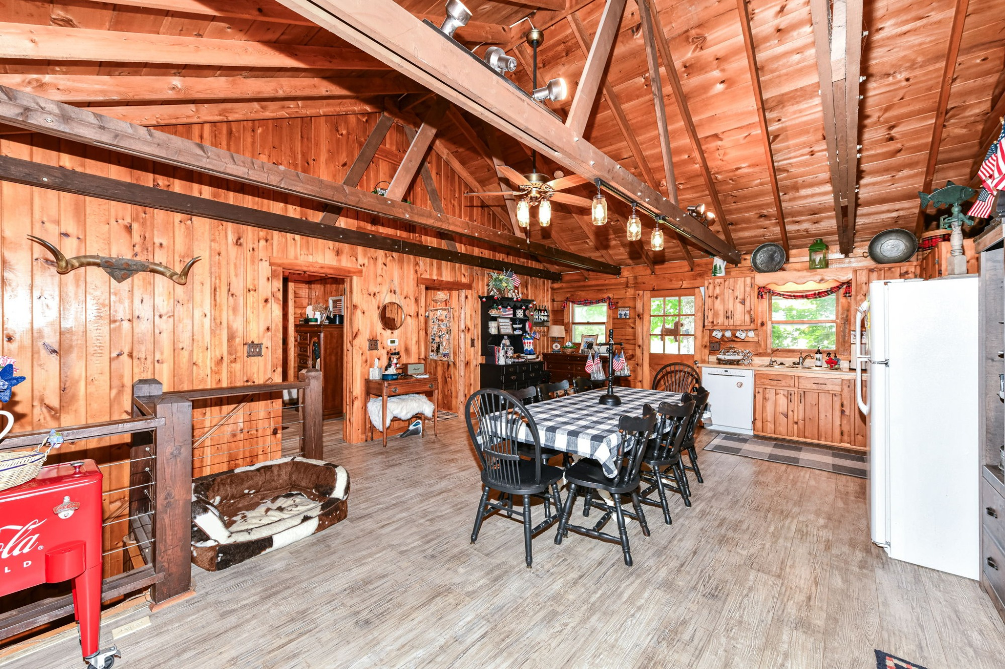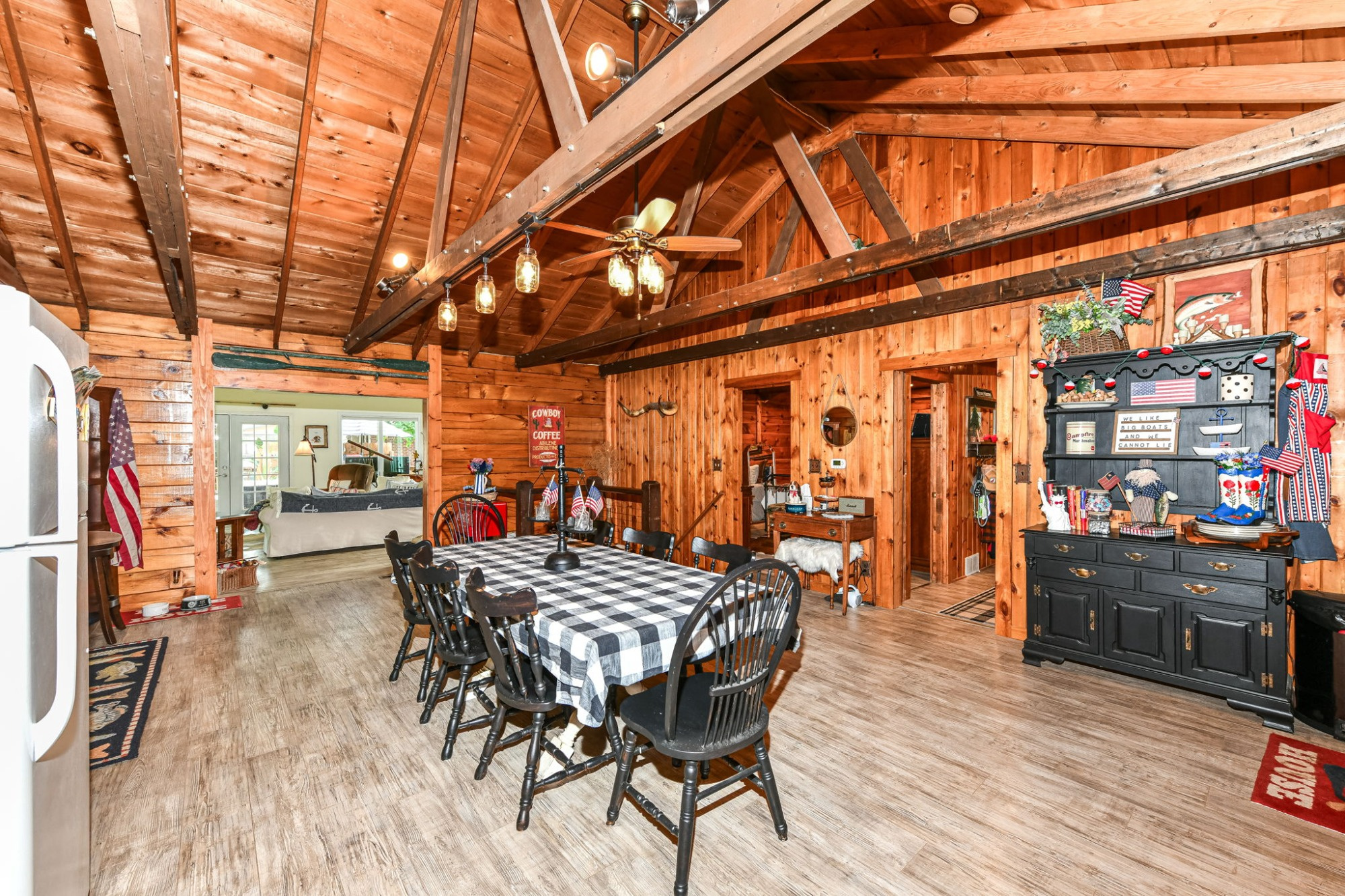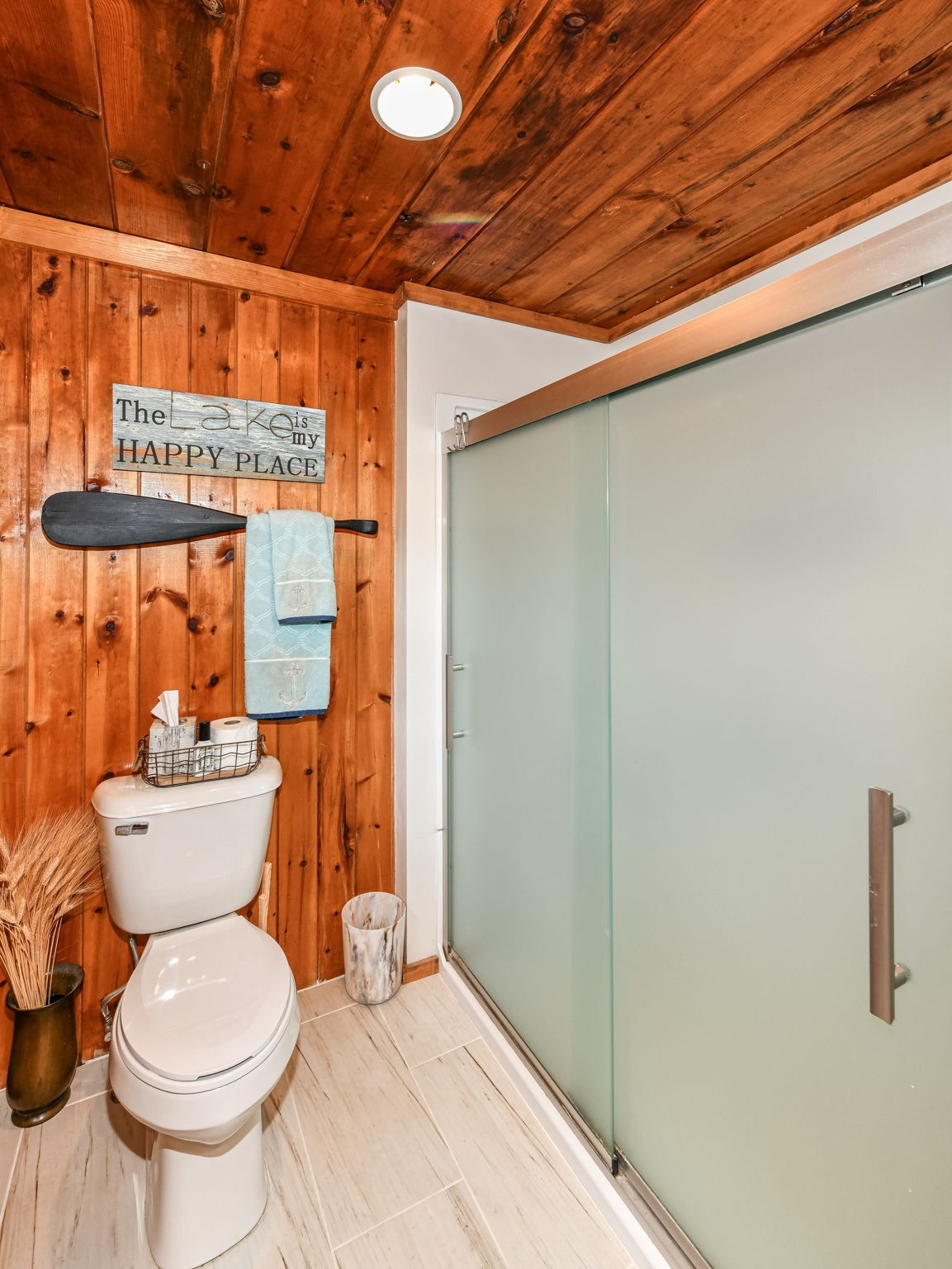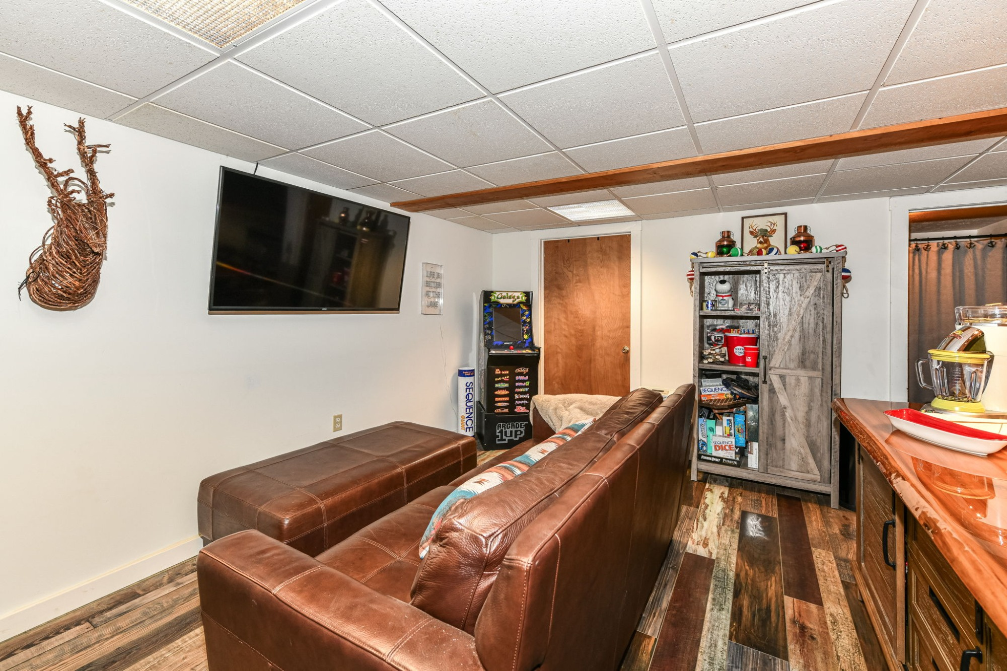 Perfectly nestled in a peaceful cove while still offering picturesque views of the main body of the lake. Sitting on a double lot, this property provides endless opportunities-expand the home, build a garage, or simply enjoy the extra space. This home is made for outdoor living, with multiple entertaining areas ideal for summer cookouts, lazy afternoons in the sun, or swimming and fishing right from your own dock. Inside, the spacious kitchen is a blank canvas-ready for you to design the culinary space of your dreams. There's plenty of room to add a large island with seating for 8 or more, making it the perfect gathering spot. The great room offers sweeping water views through large windows and direct access to one of the upper decks. Downstairs, the walkout basement features a roomy bunk area for guests, a wet bar, and even more space for entertaining-perfect for game nights or relaxing after a day on the lake. Your lake getaway awaits-bring your vision and make it your own!